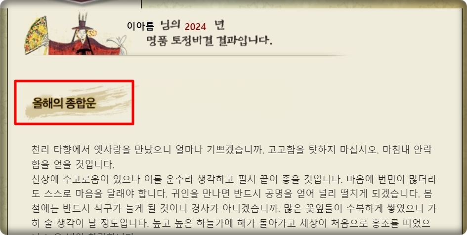 해석이 풍부한 토정비결 무료 2024 보기.